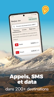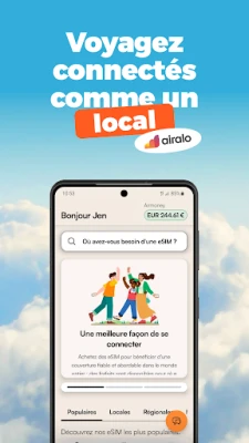 Avec Airalo, voyagez l'esprit tranquille grâce à une eSIM. Connectez-vous facilement dans plus de 200 pays et régions du monde, comme un local. Profitez d'une connectivité mondiale simple, abordable et sans frais d'itinérance, partout où vos aventures vous mènent.