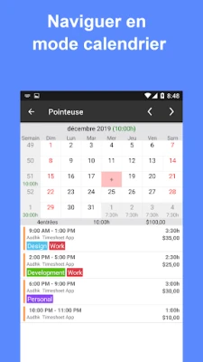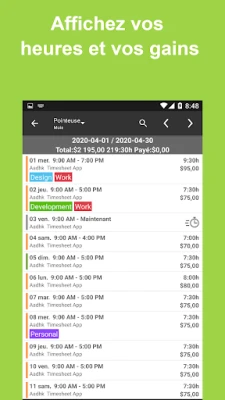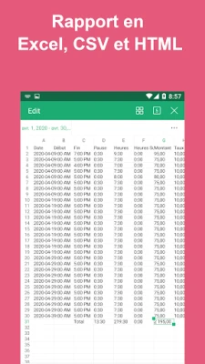 Avec Feuille temps, chaque minute de votre journée professionnelle est consignée sans effort. Qu'il s'agisse d'utiliser une minuterie intégrée pour une précision absolue, un widget rapide ou une saisie planifiée via le calendrier, l'enregistrement est fluide. L'application excelle à calculer automatiquement votre salaire, y compris les heures supplémentaires journalières et hebdomadaires, en s'adaptant à diverses périodes de paie (mensuelle, bimensuelle, bihebdomadaire, hebdomadaire). Gérez sans encombre plusieurs missions ou clients simultanément, en intégrant le support pour les taxes, les déductions, les dépenses et même le kilométrage parcouru, le tout organisé par des balises personnalisables.