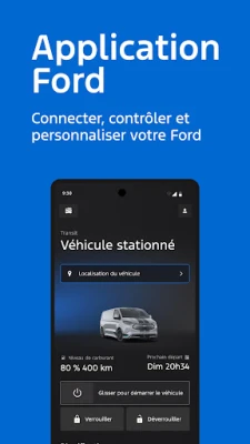 L'application Ford centralise les fonctionnalités clés pour une expérience connectée optimale. Gérez à distance le démarrage, le verrouillage et déverrouillage, consultez les statistiques et la position de votre véhicule, le tout sans frais additionnels.