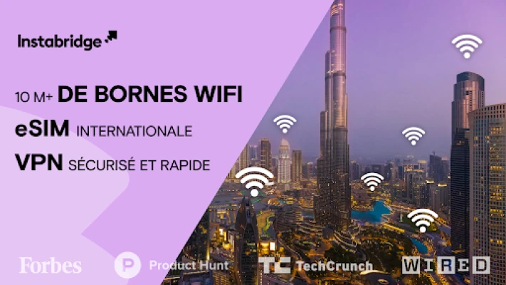 Échappez à la frustration de la recherche incessante de Wi-Fi et des demandes fastidieuses de mots de passe. Instabridge réinvente votre connectivité en offrant un accès instantané à des millions de réseaux sécurisés à travers le monde. Fini les interruptions : avec Instabridge, restez en ligne sans effort, où que vous soyez, grâce à une carte intuitive qui vous connecte en un seul geste, transformant chaque déplacement en une expérience de navigation fluide et sécurisée.