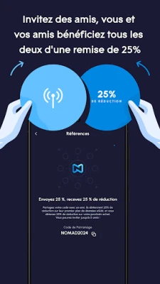 Nomad repense la façon dont vous restez connecté. Une eSIM est une carte SIM virtuelle intégrée directement à votre appareil compatible, éliminant le besoin de manipulation de cartes physiques. Avec Nomad, vous bénéficiez d'une transparence totale : aucun contrat, aucun coût caché, juste des forfaits de données et SMS clairs adaptés à vos besoins, du plan de 1 Go aux options illimitées. Conservez votre carte SIM principale pour vos appels habituels tout en profitant de la flexibilité des données Nomad pour naviguer, travailler ou partager vos souvenirs. De plus, notre programme de parrainage généreux vous récompense, vous et vos amis, avec 25% de réduction sur vos achats d'eSIM respectifs, un avantage significatif pour tous les aventuriers.