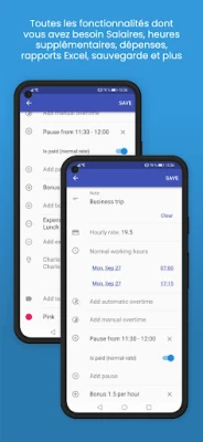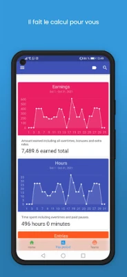 Timesheet:Work Hours Tracker excelle dans l'automatisation du calcul de votre salaire, en intégrant sans effort les heures normales, les pauses (rémunérées ou non) et les heures supplémentaires journalières ou hebdomadaires. Au-delà des chiffres de base, l'application prend en charge les primes et les dépenses, qu'elles soient uniques ou horaires, garantissant une estimation salariale d'une précision inégalée. Des statistiques détaillées et des graphiques clairs, personnalisables par période (mensuelle, hebdomadaire ou définie), vous offrent une vision approfondie de votre temps et de vos gains. Organisez-vous efficacement grâce aux modèles pour les paramètres répétitifs, aux "Postes", aux "Tags", aux notes et à un tri visuel par couleur, complétés par un widget calendrier pour une navigation rapide.